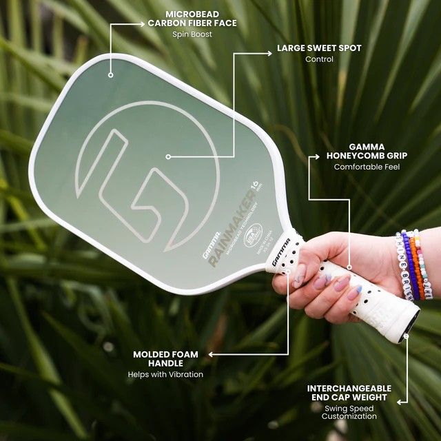 GAMMA Rainmaker™ chắc chắn sẽ thu hút mọi ánh nhìn trên sân đấu trong mùa giải này. Với sáu màu sắc trẻ trung, năng động, cây vợt này không chỉ giúp bạn nổi bật mà còn nâng cao hiệu suất chơi nhờ công nghệ hạt vi mô (microbead technology) giúp giảm ồn và cả giác nảy tốt. Dù là khi thực hiện cú giao bóng hay tham gia những pha đôi công, thiết kế nhẹ và bề mặt hiện đại của Rainmaker™ sẽ giúp mỗi trận đấu trở nên thú vị hơn. Đặc biệt, điểm ngọt lớn giúp kiểm soát bóng tốt hơn và cải thiện độ ổn định, giúp người chơi tự tin hơn trong từng cú đánh.